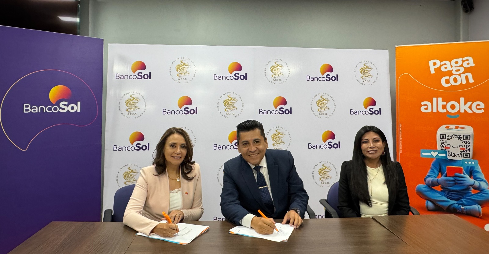 El presidente de la Asociación de Conjuntos del Folklore de Oruro, Dr. Ángel Arancibia Murillo, manifestó: “Nos encontramos contentos y es una satisfacción suscribir esta alianza estratégica con esta importante entidad financiera, BancoSol, ya que de esta manera se contribuye de manera significativa al desarrollo institucional y sobre todo al engrandecimiento de la Obra Maestra, el Carnaval de Oruro”. Además, hizo hincapié que “este ejemplo motive a otras instituciones a seguir fortaleciendo su compromiso con el quehacer cultural de Bolivia”.